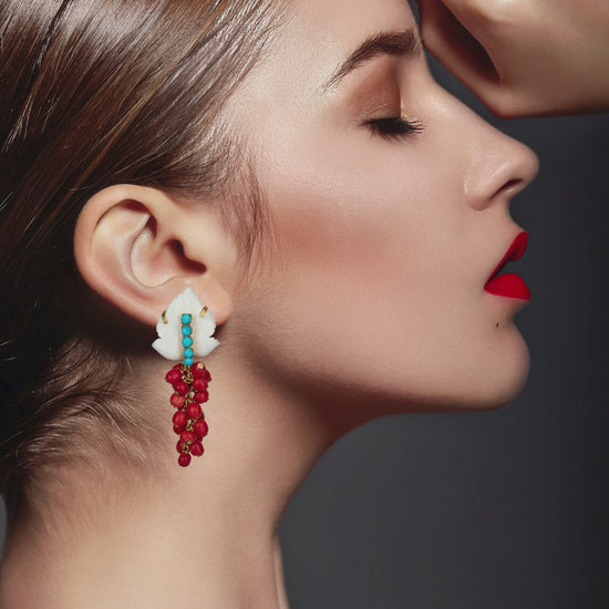 Introducing the Amara Earrings — a fresh new design perfect for summer, featuring a delicate leaf-shaped top and a removable cluster bottom for versatile styling. Crafted in vibrant seasonal colors, they blend retro, vintage, and bohemian influences into one bold, effortless look.
