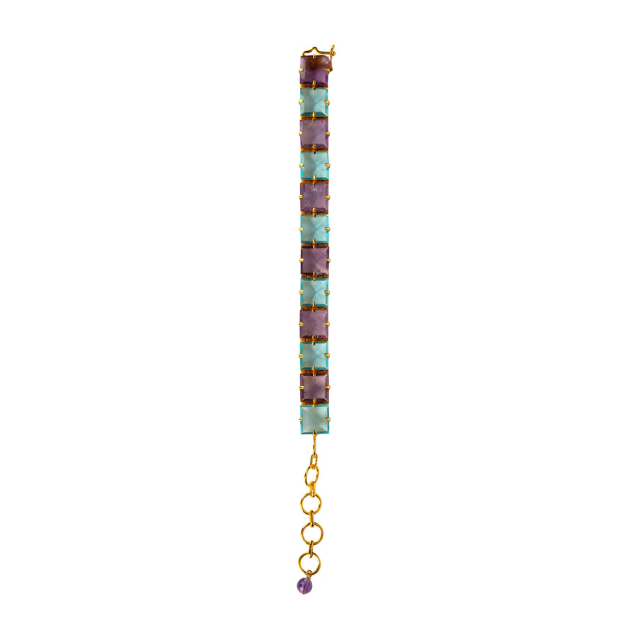 A bold new design with a vintage flair, the Gaia Bracelet features structural square stones paired with contrasting gems in a vibrant summer color palette. Unique and statement-making, it’s a piece that effortlessly stands out.