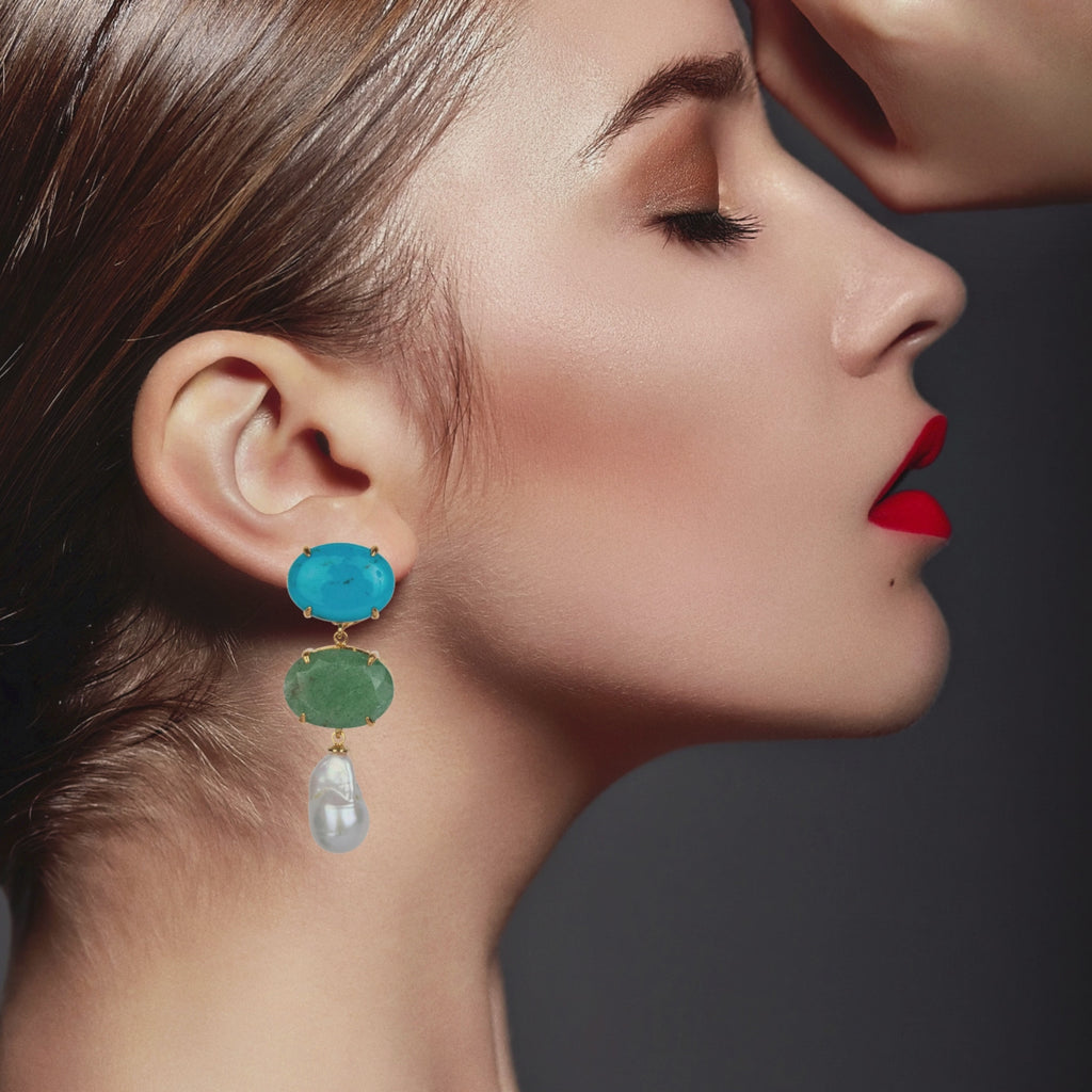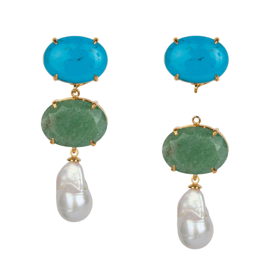 A classic returns in a fresh summer color palette. Designed with a vintage touch and a delicate pearl accent, these earrings offer 4 interchangeable styles with removable drops—wear them your way.